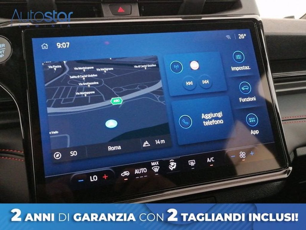 PREZZO NON VINCOLATO A FINANZIAMENTO La vettura è stata sottoposta a 75 controlli tecnici per garantirne le migliori condizioni meccaniche ed estetiche ed è stata effettuata la manutenzione ordinaria. I prezzi sono da considerarsi passaggio di proprietà e spese di agenzia escluse. Autostar Flaminia Società per Azioni con Socio Unico è concessionaria ufficiale Ford, Volvo, Jaguar, Land Rover e EVO e da oltre sessant'anni rappresenta una delle maggiori realtà sul Mercato dell'Automotive. Per maggiori informazioni sulla vettura contattare il numero 06.33235777 oppure mediante WhatsApp allo 342 7425917, dal lunedì al venerdì dalle 9:00 alle 18:00. Queste informazioni NON sono le informazioni precontrattuali previste dal D.Lgs. 21/2014, ma una semplice indicazione sommaria del veicolo offerto, che dovrà essere completata da specifiche informazioni precontrattuali fornite dal Venditore proponente prima che assumiate impegni. Autostar Flaminia Società per Azioni con Socio Unico declina ogni responsabilità per eventuali involontarie incongruenze, che non rappresentano in alcun modo un impegno contrattuale.